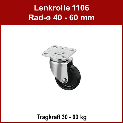 In diesem Kapitel finden Sie leichte Lenkrollen und Bockrollen für Möbel, Möbelrollen zum Einbohren sowie schwerere Apparaterollen und Transportgeräterollen