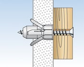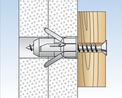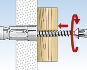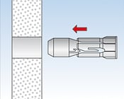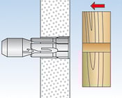 Beim Anziehen der Schraube wird der Kunststoffkonus in die Hülse gezogen und weitet den Dübel auf. Vorgeformtes Innengewinde für Spanplattenschrauben sorgt für einfaches und schnelles Eindrehen,